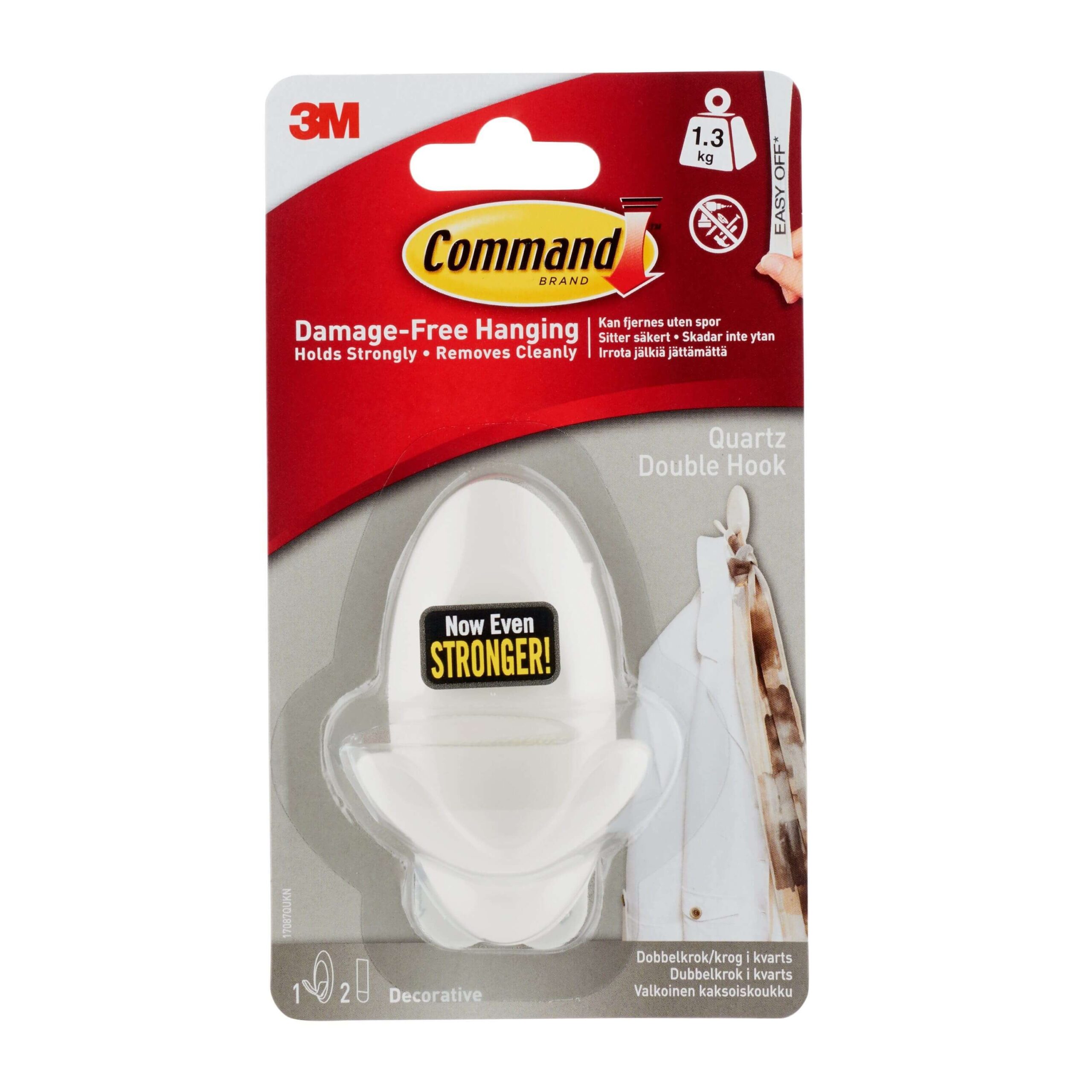 3M Command dobbeltkrog i quartzfinish er en stilren og praktisk løsning til ophængning i hjemmet. Med dobbelt funktion giver krogen ekstra plads til at organisere dine ting, og den monteres nemt med de stærke Command