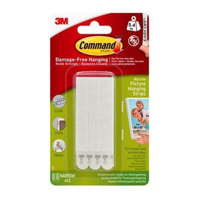 3M Command smalle klæbestrips er den perfekte løsning til ophængning af små billeder og dekorationer uden brug af søm eller skruer. Stripsene holder sikkert på plads og kan fjernes igen uden at