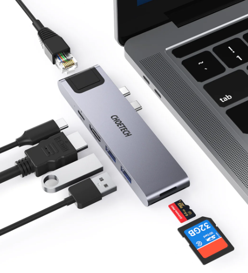 Vi har fundet Choetech -i- Usb-c Hub Til Macbook Pro Air fra Choetech hos Randomshop i kategorien Elektronik Usb Hub Dockings Adaptere. Choetech 7-i-1 USB-C Adapter HUB udvider dine MacBook Pro-porte